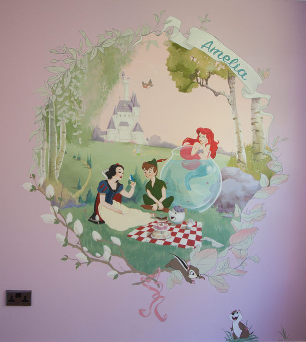 Favourite Disney characters were added to this nursery feature wall