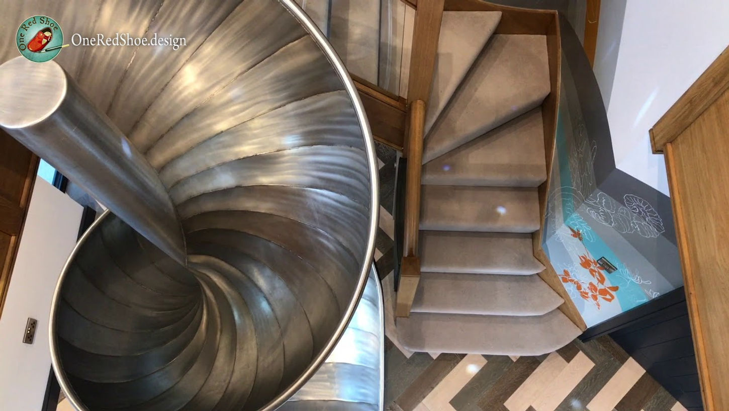 It was a real honour to be asked to paint a mural for this amazing indoor slide. Colours matched to the house interiors and metal.